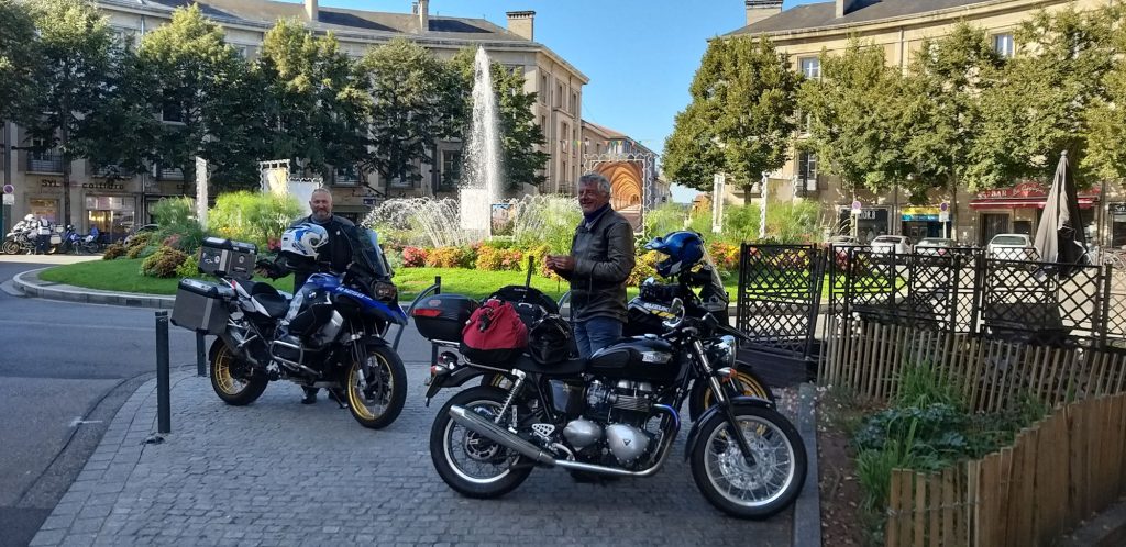 Glorious weather this morning as we waited to board our train at Folkestone on the first day of our tour. Successfully into France and onto the motorway to get us out of Calais and down to the better roads. Sat Nav changed to avoid motorways at our 1st coffee stop and we head across country on the quiet French D roads. Following our lunch stop we hit some fantastic sweeping and curving roads as we travel eastwards to our final destination for the day of Verdun. A great 1st day with excellent weather, great roads and steak and beer to finish the evening off. Tomorrow’s route takes us through the Vosges and down towards the Swiss border.