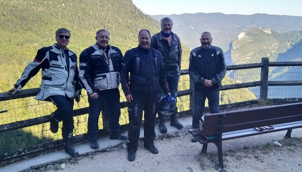 Ride out day today around the absolutely stunning Gorge du Verdon, the scenery is amazing and the roads aren’t bad either. A great days riding with lots of photos to add to the memories. We then had an excellent evening meal in a local restaurant with Creme Brulee and Chocolate Tort to finish. A couple of the crew wanted to watch the rugby so a bar was found to watch England convincingly beat Argentina, so a good end to an excellent day. Off to Italy tomorrow.