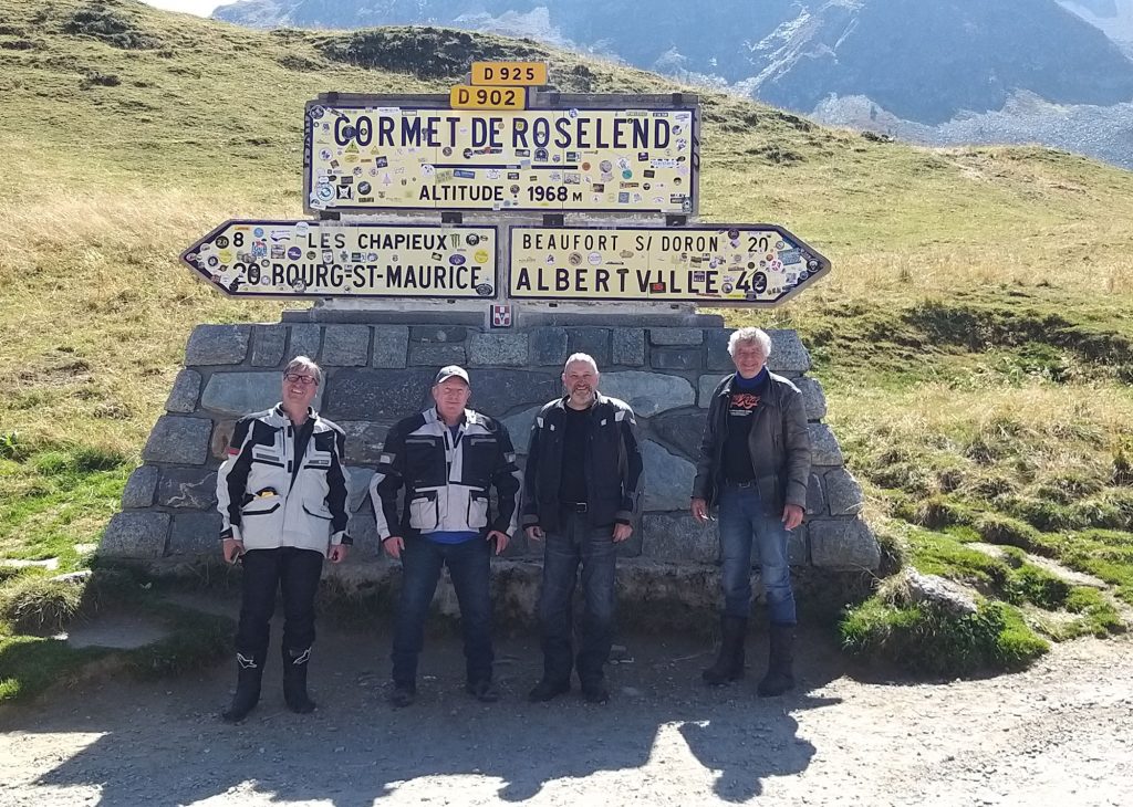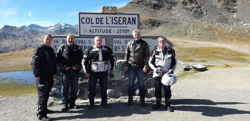 Heading away from Italy this morning and back across the border into France via Col de Mont Cenis and then onto the highest paved road in the Alps, Col de L’Iseran which at 2770 meters seems very high. Obligatory team photo by the sign at the summit and onto our coffee stop. Cormet de Roselend is next on the list and is our last pass in the Alps. We stop for lunch by a lake and then head away from the Alps to our overnight stop in the Bresse region. Onwards north again tomorrow as our tour travels towards its final couple of days.
