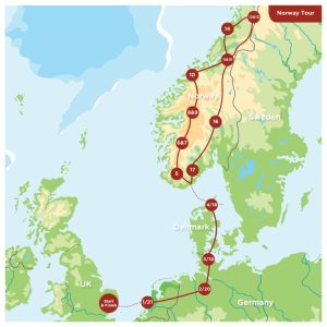 You leave Norway and head back to Denmark via the ferry from Kristiansand, crossing back into Germany and back through Holland over the next couple of days to end this fantastic 22-day adventure with your overnight ferry back to Harwich.